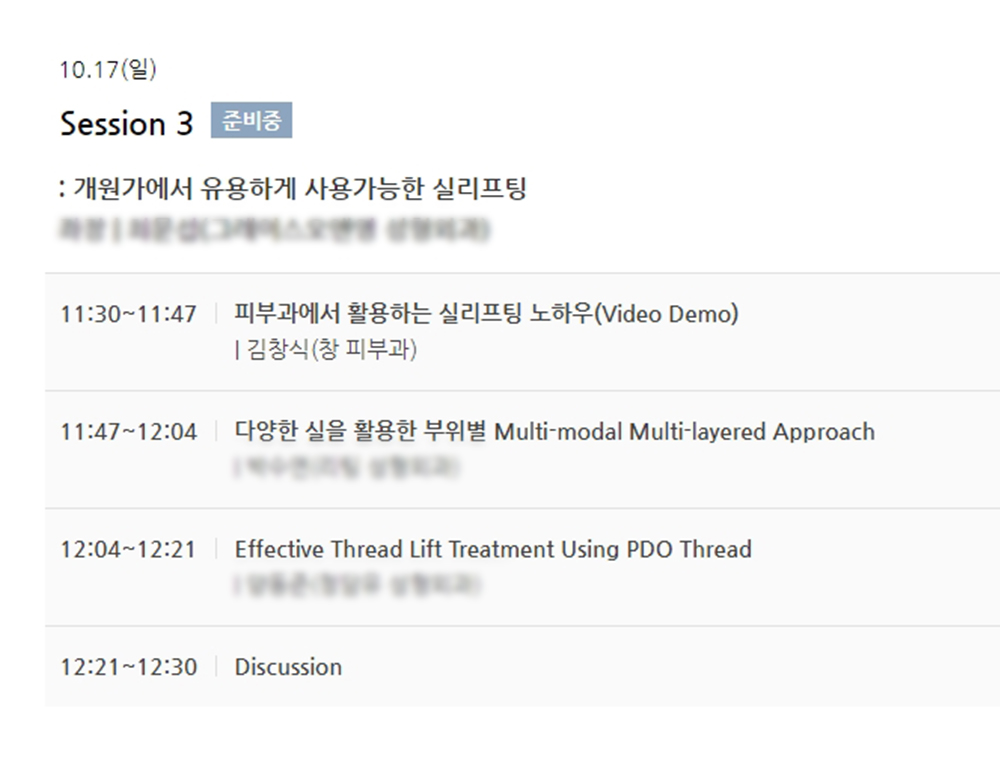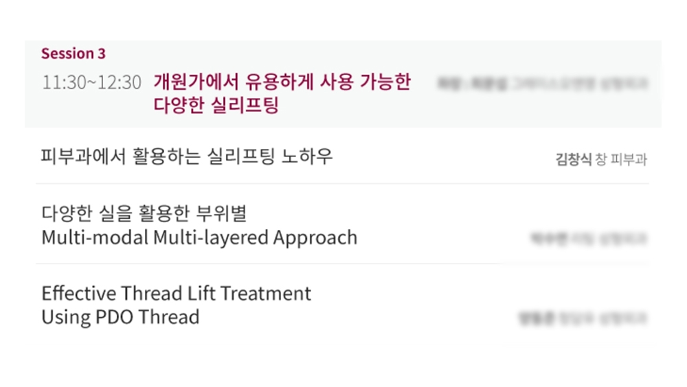 강연 주제 : 피부과에서 활용하는 실리프팅 노하우