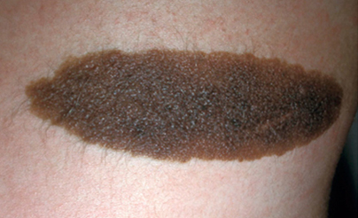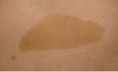 갈색의 비교적 큰 반점이 어깨, 앞가슴, 등 부위에 나타나는 색소질환입니다. 색소 반점 부위에 주변보다 길고 많은 털이 자라나며 경우가 많으며, 사춘기 이후의 남성에 잘 발생합니다. 처음에는 황갈색의 불규칙한 반점이 생겨 점차 크기가 커져 20cm 이상의 크기가 되기도 하고 연학 갈색과 진한 색소가 혼합된 양상을 보이게 됩니다.