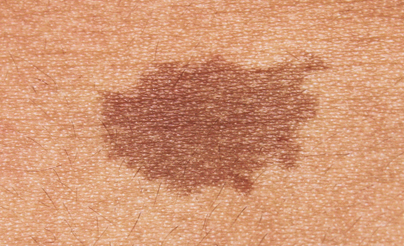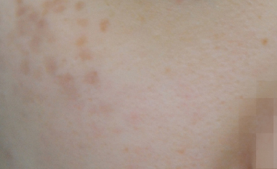 다양한 크기의 연한 밀크커피 색깔과 비슷한 갈색 반점으로 비교적 경계가 명확합니다. 인구의 10% 정도에서 나타나는 흔한 색소 반점으로, 선천적으로 발생하는 경우가 많으며 저절로 사라지기도 합니다.