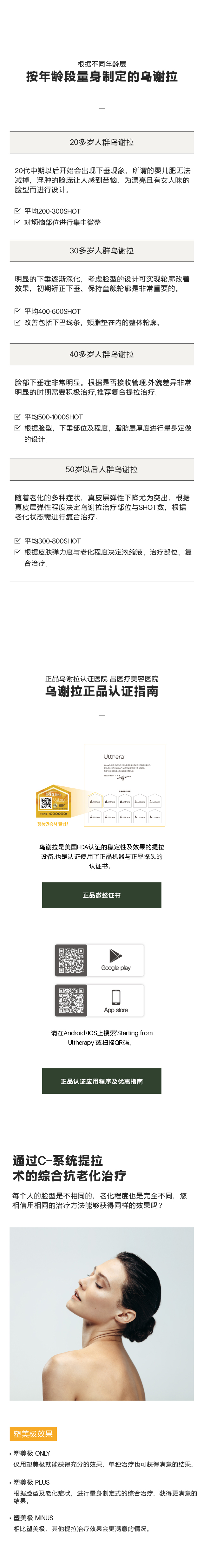 每个人的脸型与衰老情况都是不一样的。因此,通过进行特定微整是很难获得同样的效果的。昌医疗美容医院的C-系统提拉术首先对脸型与4种老化症状进行评估,为获得最佳的效果提供个人量身制定式的计划。