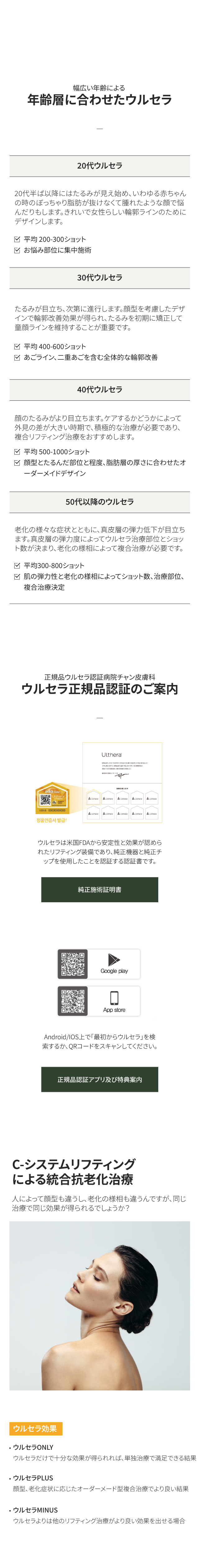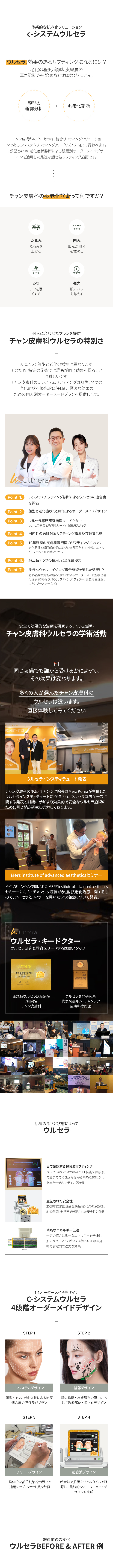 人によって顔型と老化の様相は異なります。そのため、特定の施術では誰もが同じ効果を得ることは難しいです。チャン皮膚科のc-システムリフティングは顔型と4つの老化症状を優先的に評価し、最適な効果のための個人別オーダーメードプランを提供します。